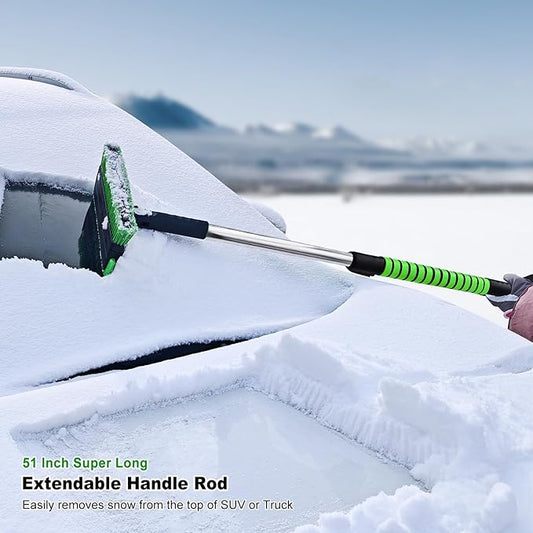SEAAES 51 Inch Heavy Duty Snow Brush for Trucks, Stable Design Long Handle Extendable Snow Broom for SUV, Windshield Ice Scraper with Foam Grip for Car Automobile Vehicle Window - Green