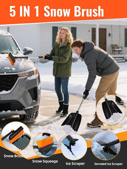 5 in 1 Multi-Functional Snow Brush Ice Scraper and Shovel Kit with Detachable Ergonomic Foam Grip for Car Automobile Vehicle Window SUV Truck Windshield Patios Driveways Sidewalks Winter Snow Removal