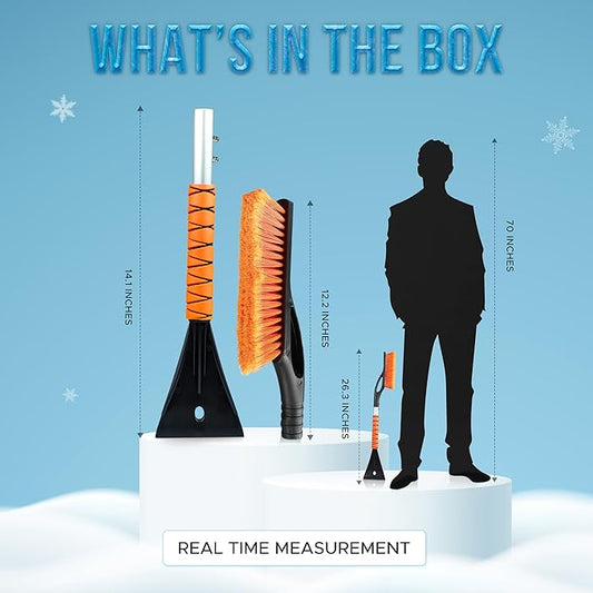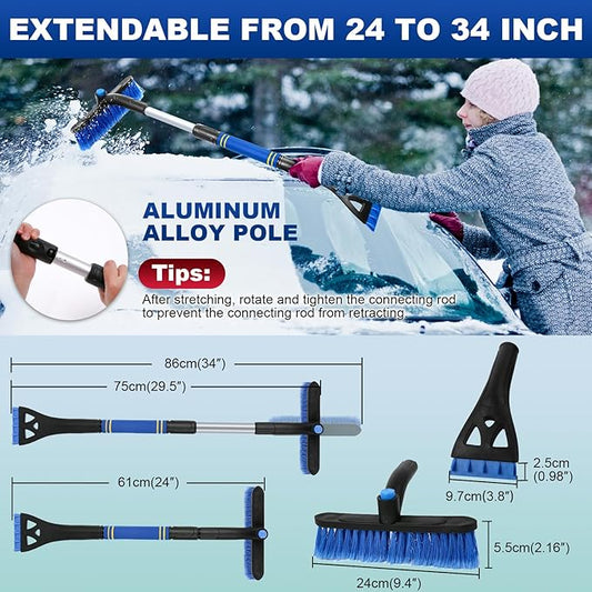 47.3" Ice Scrapers for Car Windshield, 2 in 1 Ice Scraper and Snow Brush with Comfortable Foam Grip, Adjustable Length Settings, Snow Removal Tool for Car, Truck, SUV, Winter car Accessories