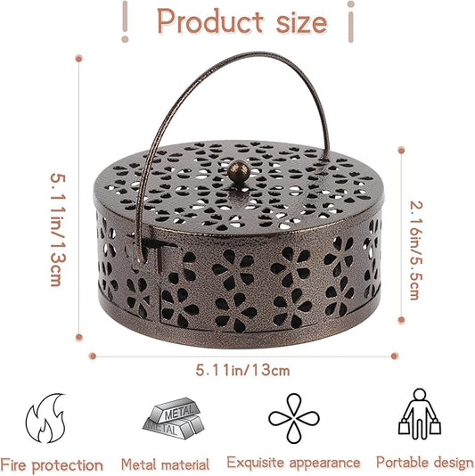 Portable Iron Mosquito Coil Holder with Handle Round Heat-Resistant Incense Holder for Home Office Camping (Bronze)