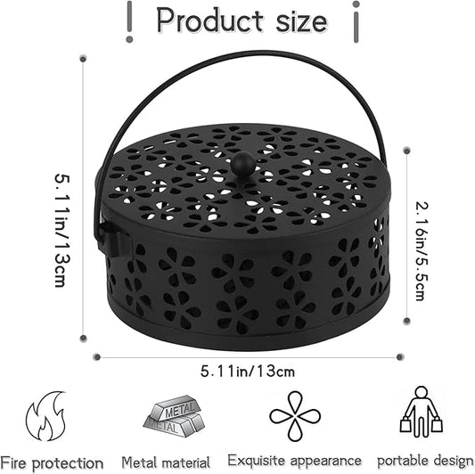 Portable Iron Mosquito Coil Holder with Handle Round Heat-Resistant Incense Holder for Home Office Camping (2Pack Black)