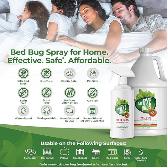 Bed Bug Spray for Getting Rid of Bed Bugs Permanently. Say Bye Bugs - a Non-Toxic, Kill on Contact Bed Bug Treatment That Doesn't Stain & is Odor Free. Simply Shake & Spray (1x 128oz).