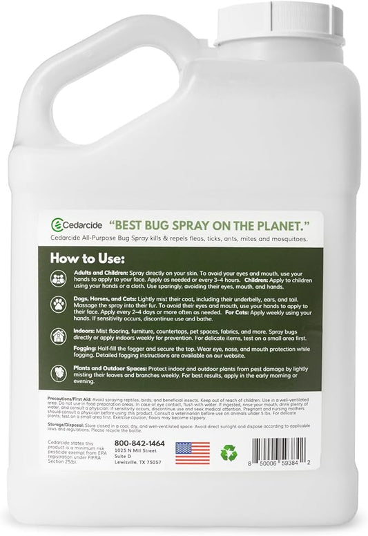 Cedarcide All-Purpose Bug Spray | Kill and Control Mosquitos, Fleas, Ticks, Ants | Made with Natural Essential Oils | Use on People, Pets & Kids | Cedarwood Gallon (128 Oz.)