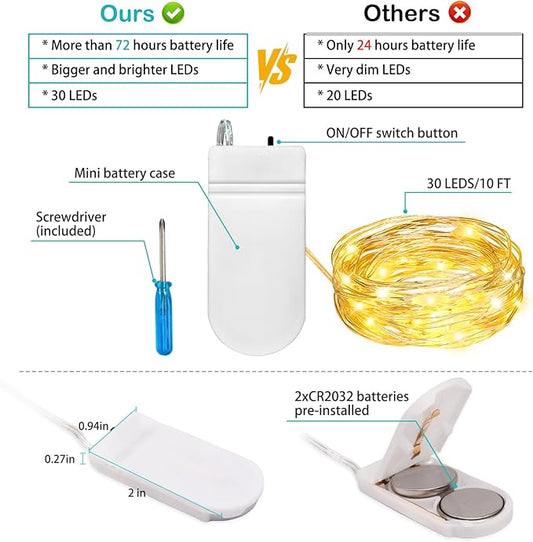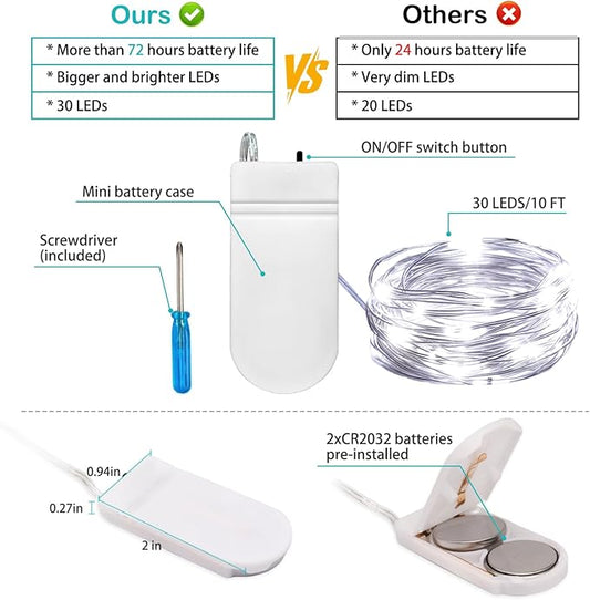 VOOKRY 8 Pack 30 LED Fairy Lights Battery Operated String Lights - 10 ft Mini Silver Wire Firefly Starry Moon Lights for DIY Crafts Wedding Party Bedroom Table Centerpieces Christmas(Warm White)