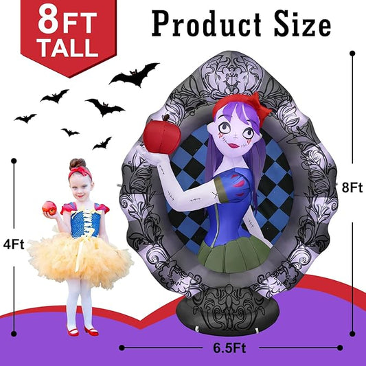 8Ft Tall Giant Halloween Inflatables Snow White Outdoor Decorations, Blow Up Magic Mirror Yard Decor Build-in Flash Lights for Outside Party Lawn Garden