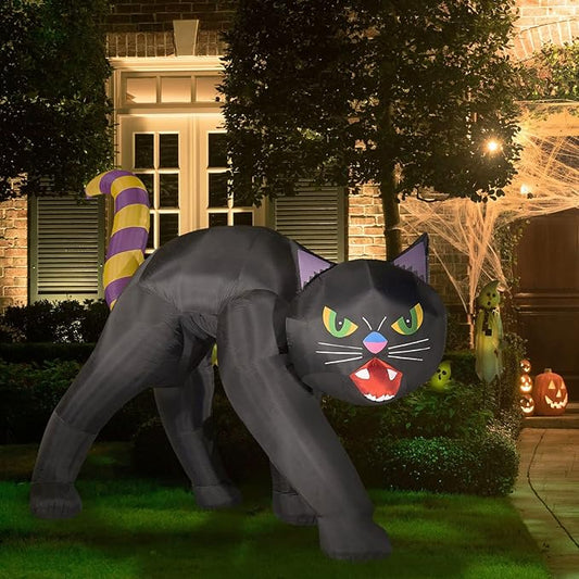Haunted Hill Farm 9.8 Ft. Halloween Cat Blow Up with LED Lights, Giant Inflatable Yard Decor for Home, Haunted House, Black Cat with Spooky Green Eyes, Festive Outdoor Decorations for Patio and Yard