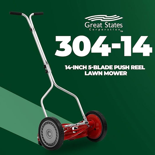 Great States 304-14 14-Inch 5-Blade Push Reel Lawn Mower, Red
