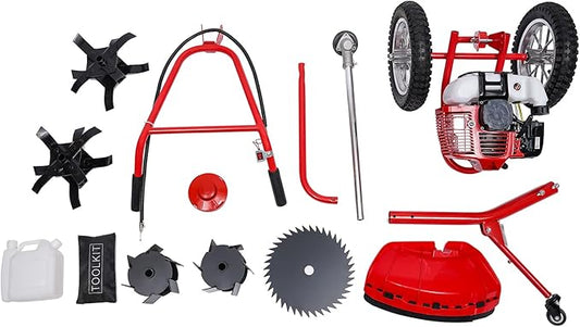 49CC 2-Stroke Gas Powered Hand Push Lawn Mower, Gasoline Lawn Mower Walk-Behind Push Grass Trimmer Brush Cutter Push Mower Weeding Machine w/Single-Cylinder Air-Cooled for Home Garden Yard 7000r/min