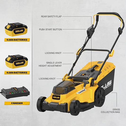 Litheli Cordless Lawn Mower 13 Inch, 5 Heights, 20V Electric Lawn Mowers for Garden, Yard and Farm, with Brushless Motor, 4.0Ah Battery & Charger Included