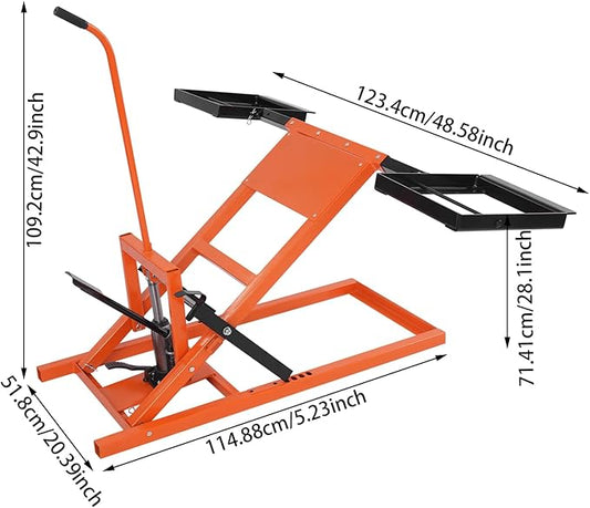 Lawn Mower Lift, 500Lbs Lawn Mower Lift Carbon Steel Hydraulic Lift Jack Lawnmower Lift Tool Adjustable Lawnmower Lifts w/Hydraulic Foot Pedal for Garden Tractors All-Terrain Maintenance and Repair