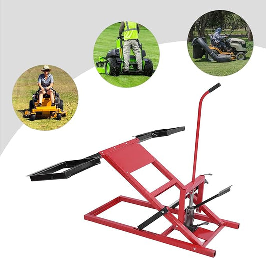 Lawn Mower Lift with Hydraulic Jack 500 Lbs Weight Capacity, Solid Carbon Steel Lawn Mower Lift, Adjustable Wheel Span Lawn Lifter for Riding Tractors and Zero Turn Lawn Mowers (Black+Red)