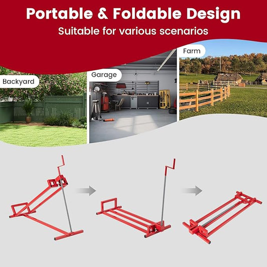 Goplus Lawn Mower Lift, 880LBS Folding Riding Mower Lift Jack with Adjustable Height, Manual Handle, Rotating Sleeve, Heavy Duty Lawn Tractor Lift, Zero Turn Mower Lift for Garden Farm, No Assembly