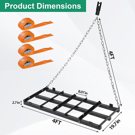 4 FT Drag Harrow Driveway Grader, Heavy Duty Power Rake, Driveway Drag for Gravel w/ 4 FT Chain, Tow Behind Lawn Rake for ATV, UTV, Tractor, Mower, Land Leveler for Gravel, Sand, Soil, Hay