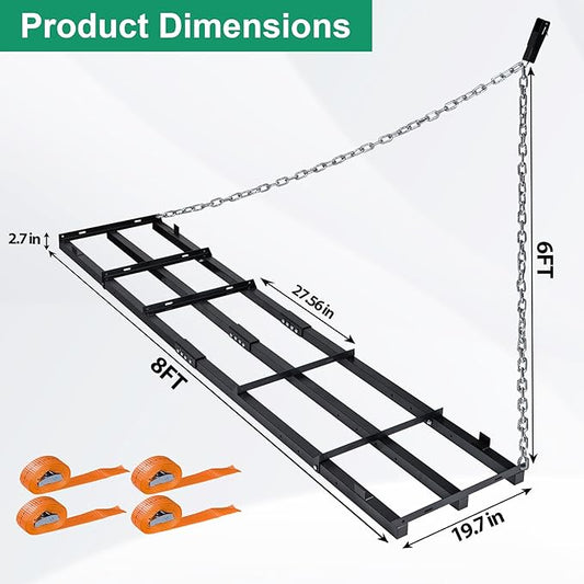 8 FT Drag Harrow Driveway Grader, Heavy Duty Power Rake w/ 6 FT Chain, Tow Behind Lawn Rake for ATV, UTV, Tractor, Mower, Land Leveler for Gravel, Sand, Soil, Hay
