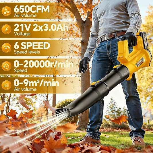 Leaf Blower Cordless, 21V Brushless Powerful Electric Leaf Blower with 2x4.0Ah Batteries and Fast Charger,6-Speed Modes,Shoulder Strap, Lightweight Leaf Blowers for Lawn Care,Blowing Leaves,Dust, Snow