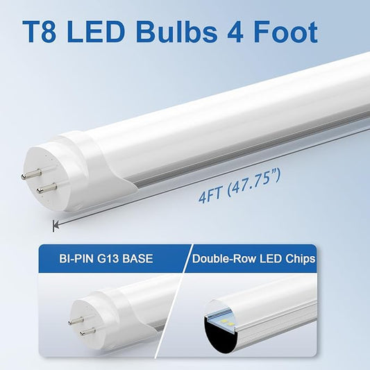 T8 LED Bulbs 4Ft, 24W 3120 Lumen, T10 T12 65W Equivalent Fluorescent Replacement, 6500K Cool White, Type A+B 4 Foot Tube Light for Office Shop Light, Remove Ballast or Plug & Play, 4 Pack