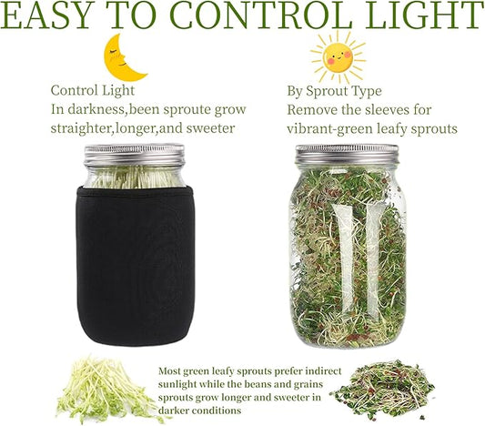 Lulonpon Sprouting Kit, One Pieces Seed Sprouting Jar Kit, Wide Mouth Quart Mason Jars with 304 Stainless Steel Screen Sprout Lids,86mm Caliber with Tray,Stand,Shading Bag and Brush,for Bean Sprouts