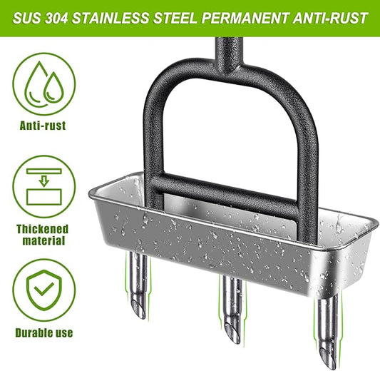 Dolibest Lawn Coring Aerator, Manual Lawn Aerator, 3 Stainless Steel Corer Plug Aerator with Soft Rubber Grip, Pre-Assembled Manual Grass Aerating Tool & Cleaning Hand Tool for Improving Lawn Health