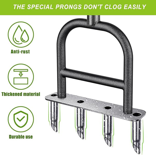 Dolibest Lawn Coring Aerator, Manual Lawn Aerator, 4 Stainless Stee Corer Plug Aerator with Soft Rubber Grip, Pre-Assembled Manual Grass Aerating Tool & Cleaning Hand Tool for Improving Lawn Health