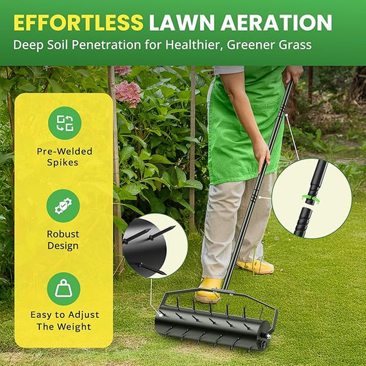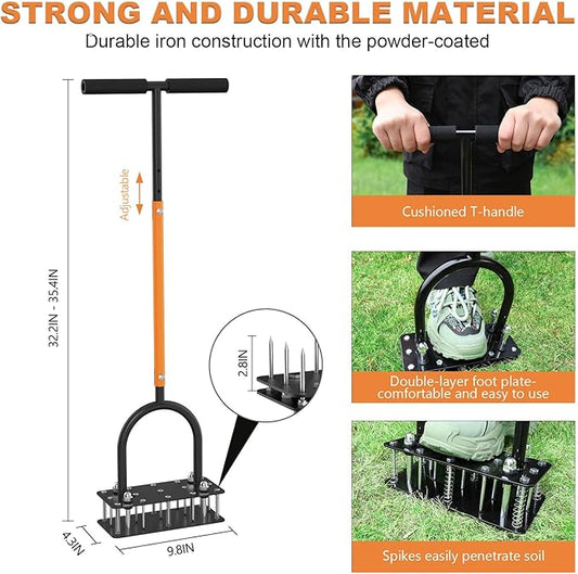 Lawn Aerator Tool - Grass & Soil Aerator for Lawn & Yard Care, Durable Manual Lawn Aerator for Healthy Grass, Compact Soil & Easy-to-Use Spike Plug Aerator