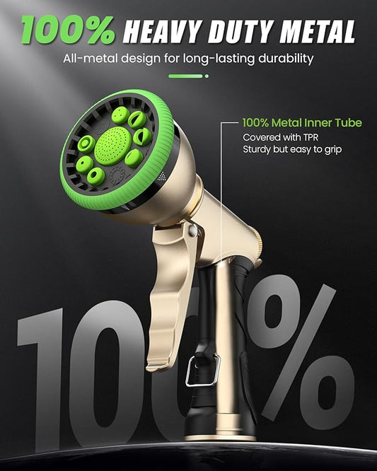 FANHAO Garden Hose Nozzle 100% Heavy Duty Metal, Water Hose Sprayer High Pressure with 8 Spray Patterns, Thumb Control, On Off Valve for Garden Watering, Car and Pet Washing