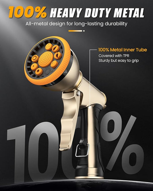 Garden Hose Nozzle Heavy Duty Metal Water Nozzle with Adjustable Watering Patterns High Pressure Hose Nozzle Sprayer, Pefect for Washing and Cleaning