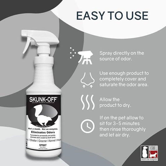Skunk Off Odor eliminator pet spray 32oz - Safe for head & face - Ready to use skunk odor remover. Non-enzymatic formula safe for pets & people.