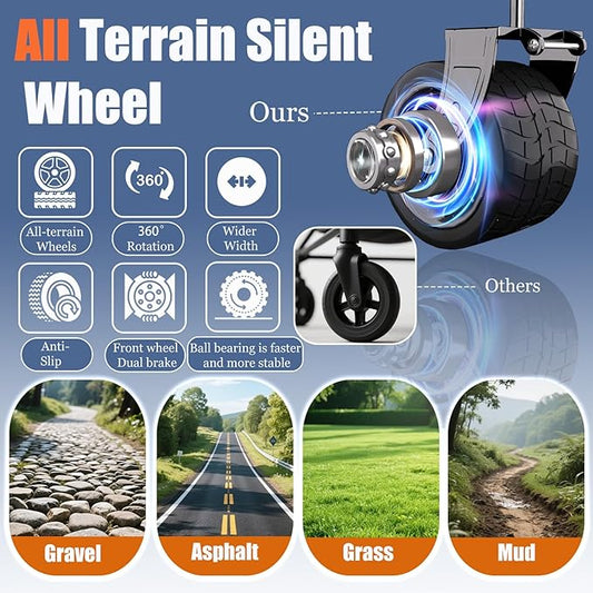 Navatiee Big Wheels Collapsible Wagon Cart Foldable, Heavy Duty Beach Wagon with Silent All-Terrain Wheels, Folding Utility Grocery Cart with Side Pocket and Brakes for Camping Garden Sports, Blue