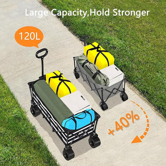 Wagons Carts Foldable with All-Terrain Big Wheels 400 LBS, Heavy Duty Collapsible Utility Wagon Cart, Folding Grocery Cart for Beach, Camping, Sports, Shopping, Garden and Fishing-Black Stripe