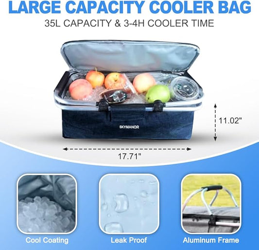 SKYMANOR Collapsible Wagon with Removable Canopy, 3-in-1 Heavy Duty Garden Cart with Big All-Terrain Wheels, Brakes, Adjustable Push Pull Handle, Cooler Bag, 300LBS Wagon Cart for Camping (Black)