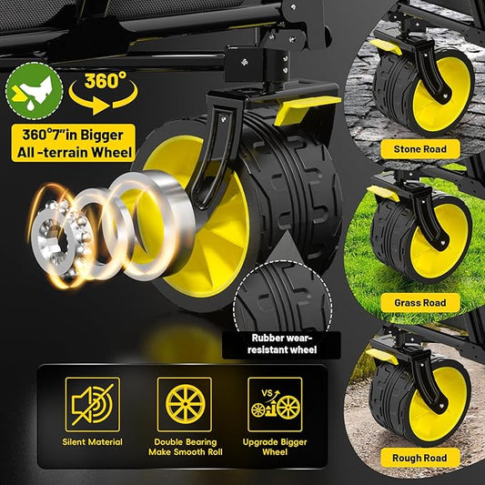 Collapsible Extended Wagon with Big All-Terrain Wheels 350LB& Oversized Outdoor Heavy Duty Utility Garden Cart Foldable Large Beach Wagon for Sand Fishing Camping Portable Grocery Pull Cart