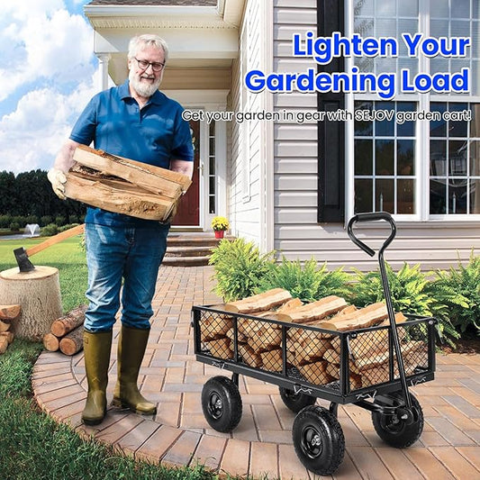 TEANDE Garden Cart, Heavy Duty 880Lbs Capacity Mesh Steel Garden Cart with Removable Sides to Convert into Flatbed, Utility Metal Wagon with 180° Rotating Handle and 10 in Tires, Black