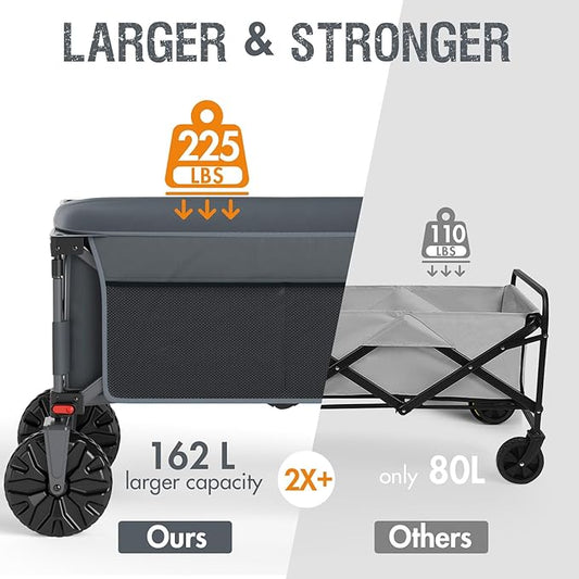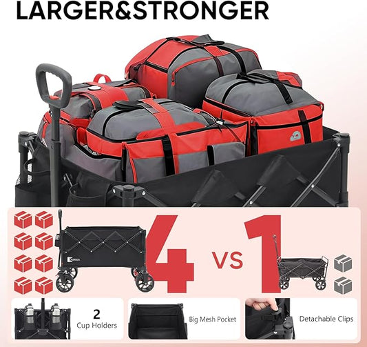 PORTAL Collapsible Wagon with Brakes, Heavy Duty Utility Cart with All-Terrain Wheels, Portable Folding Wagons for Camping, Beach, Garden, Shopping, and Groceries