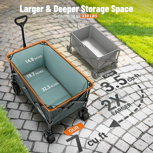 Impact Canopy Folding Collapsible Utility Wagon, Extra-Large Wagon with All-Terrain Wheels, Forest Green