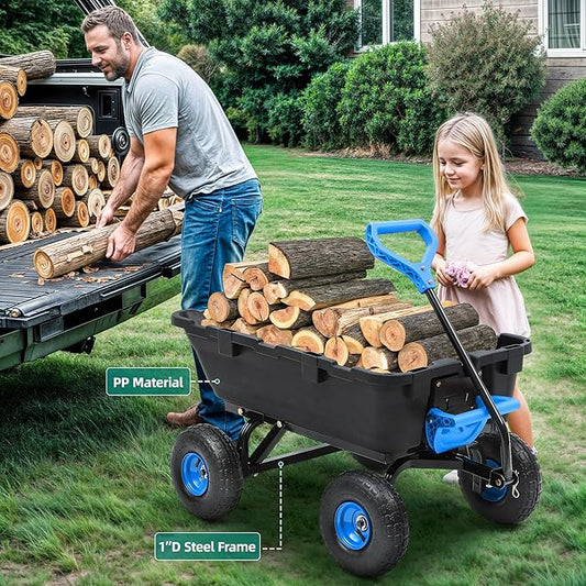 800lb Garden Dump Cart,Utility Wagon Wheelbarrows with Quick-Release System&4 Pneumatic Tires,Heavy Duty Yard Dump Wagon with Steel Frame for Yard, Farm, Gardenand Halloween Hauling (Blue)