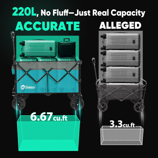 Sekey 220L Collapsible Foldable Wagon with 330lbs Weight Capacity, Heavy Duty Folding Utility Garden Cart with Big All-Terrain Beach Wheels & Drink Holders.Pink