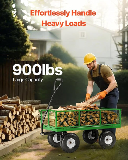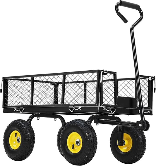 VEVOR 900 Lbs Steel Garden Cart on Wheels, Heavy Duty Pullable Garden Wagon Yard Cart, Outdoor Metal Utility Wagon with 10" Tires and Mesh Removable Sides(Convert to Flatbed), and 180°Rotating Handle