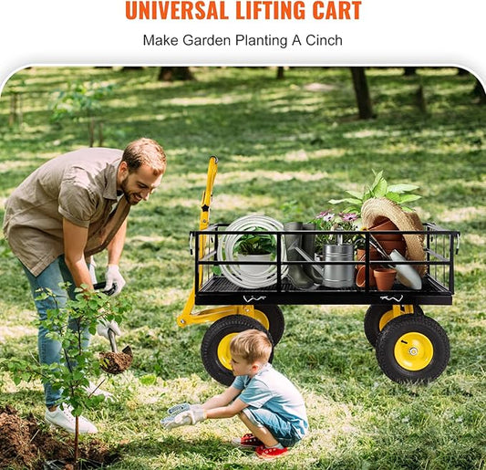 VEVOR 1200 Lbs Steel Garden Cart, Heavy Duty Pullable Garden Wagon Yard Cart, 2 in 1 Outdoor Metal Utility Wagon Yard Trailer with 13" All Terrain Tires, Mesh Removable Sides and 180°Rotating Handle