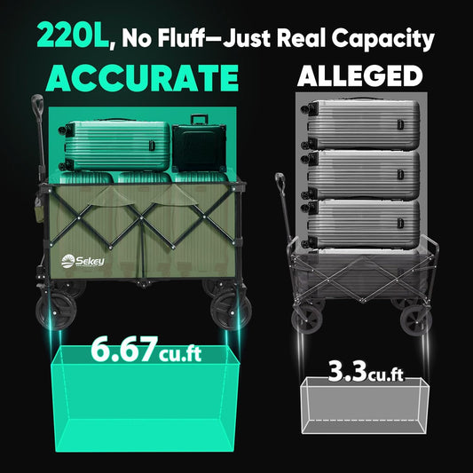 Double Decker Wagon 320L Large Capacity 400LBS Collapsible Sports Utility Cart with Big Wheels,Double Extended Tailgate Heavy Duty Folding Wagon Cart for Groceries,Camping,Beach,Garden,Outdoor