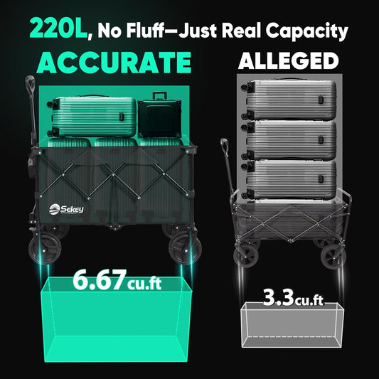 Favoyard Extra Large Collapsible Wagon Carts Foldable 220L & 360LBS Folding Wagons w/All-Terrain Wheels & Brakes Portable Utility Shopping Cart for Beach Grocery Sports Garden Camping Outdoor, Black