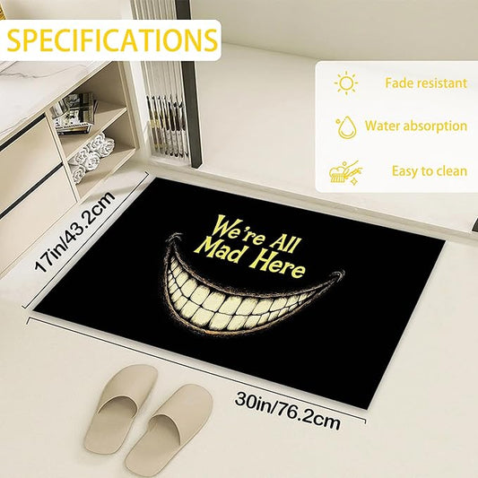Gothic Smiling Mouth Welcome Mat Indoor,We're All Mad Here Front Door Mat,Non-Slip Entryway Rug, Low Profile Felt Indoor Doormat for Back Door Porch Patio Entrance,30 x 17 Inch