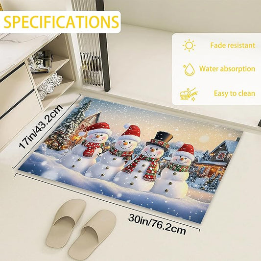 Welcome Mat Indoor,Winter Snowman Family Front Door Mat,Christmas Tree Entryway Rug for Porch Patio Non-Slip Outdoor Entry Doormat for Back Door Outside Entrance Hallways,30 x 17 Inch