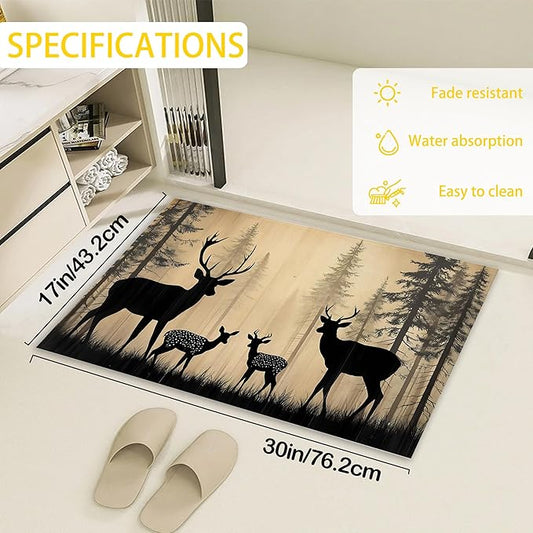 Vintage Forest Deer Family Welcome Mat Indoor,Rustic Animal Front Door Mat,Non-Slip Entryway Rug, Low Profile Felt Indoor Doormat for Back Door Porch Patio Entrance,30 x 17 Inch