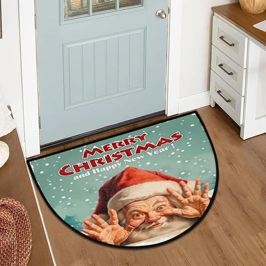 Christmas Half Round Door Mat, Merry Christmas Funny Santa Semicircle Door Mats, Non Slip Area Rug Soft Doormat for Indoor Entrance Wear Resistant Welcome Mat for Garage Patio Home Decor 24 x 36 In