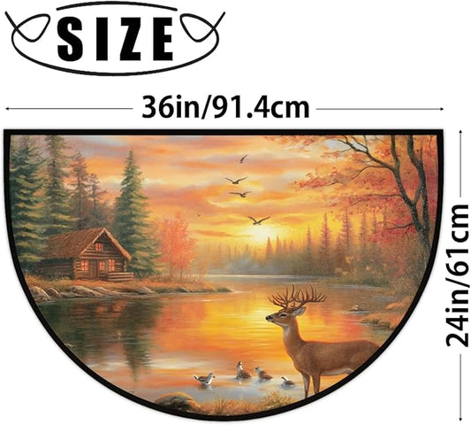 cfpolar Fall Non-Slip Soft Half Round Door Mat, Autumn Deer Maple Forest Semicircle Mat for Indoor Entrance Garage Bath Living Room Patio 24 x 36 in