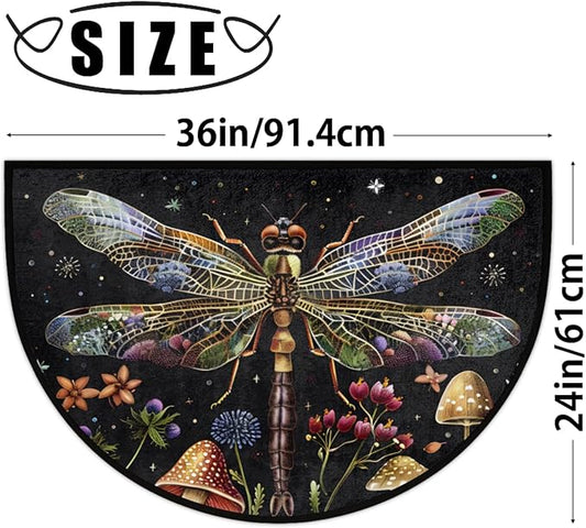 cfpolar Non-Slip Soft Half Round Door Mat, Dragonfly Mushroom Flower Semicircle Mat for Indoor Entrance Garage Bath Living Room Patio 24 x 36 in