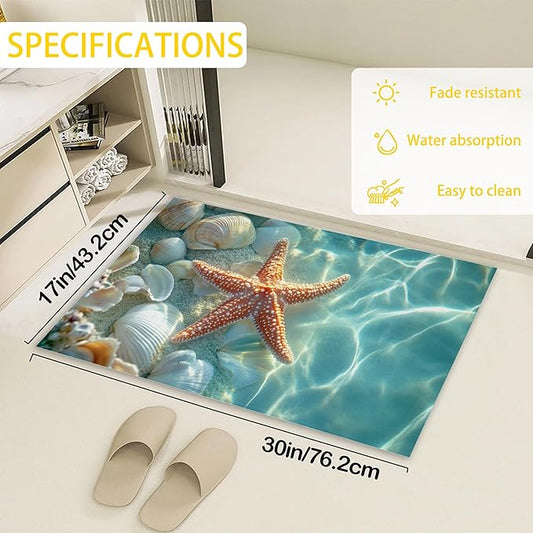 Welcome Mat Indoor,Starfish Front Door Mat,Summer Sea Shells Entryway Rug for Porch Patio Non-Slip Outdoor Entry Doormat for Back Door Outside Entrance Hallways,30 x 17 Inch