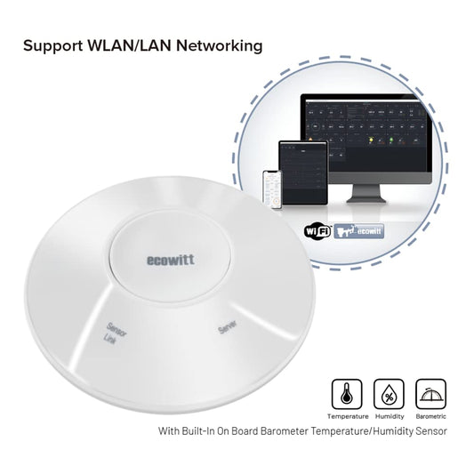 Ecowitt GW2000 Wi-Fi Hub for Wittboy Weather Station, with Built-in on Board Barometer and Thermometer/Hygrometer Sensor, Support Ecowitt Weather Sensors