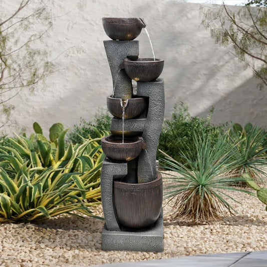 SunJet 5-Tiers Indoor/Outdoor Garden Water Fountain - 50.7inches Modern Floor-Standing Cascading Water Feature - Suitable for Deck, Patio, Porch, Yard Decor