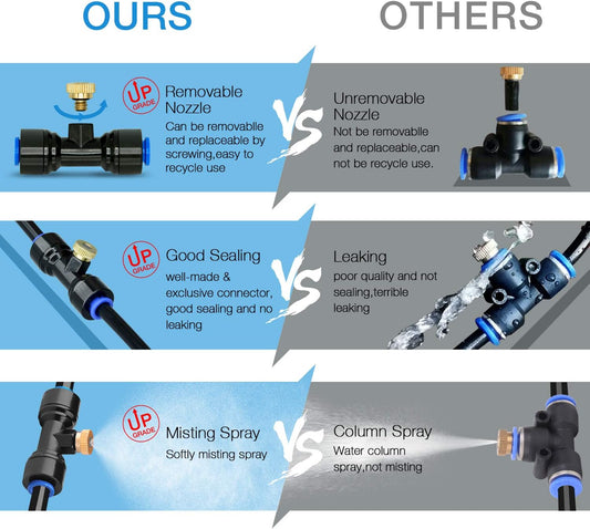 Misting Nozzles Kit Include 36 Pcs Misting nozzle 30 Pcs Misting 6 Pcs Plug nozzle tees for Outdoor Spray Cooling System (72 Pieces)